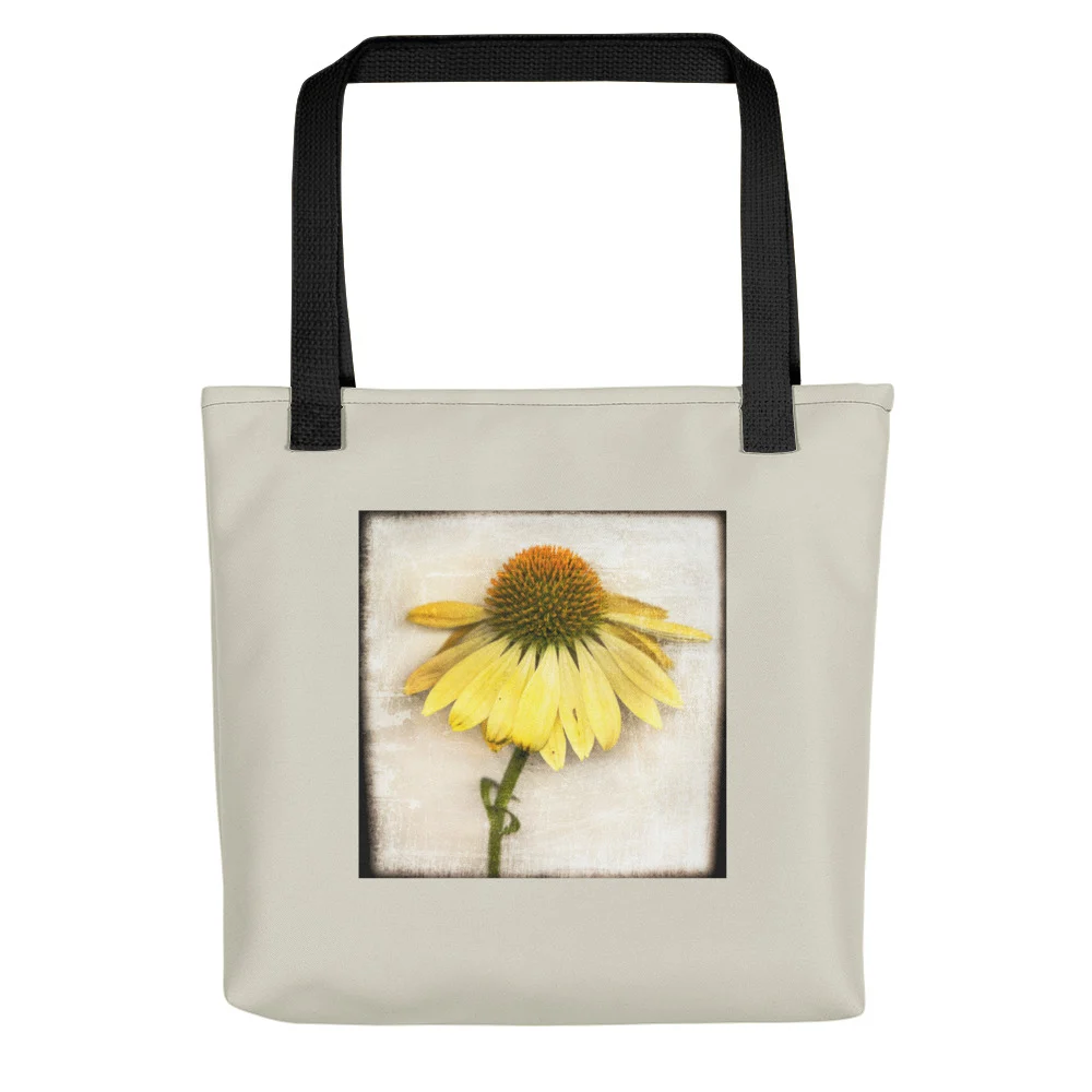 This Warm White Medium Tote Bag features an Orange Cone Flower  from Kathy Wolfe Images. An award-winning, Atlanta artist, Kathy has partnered with GardenZeal to share some of her unique images on home decor, accessories, apparel and gift items.