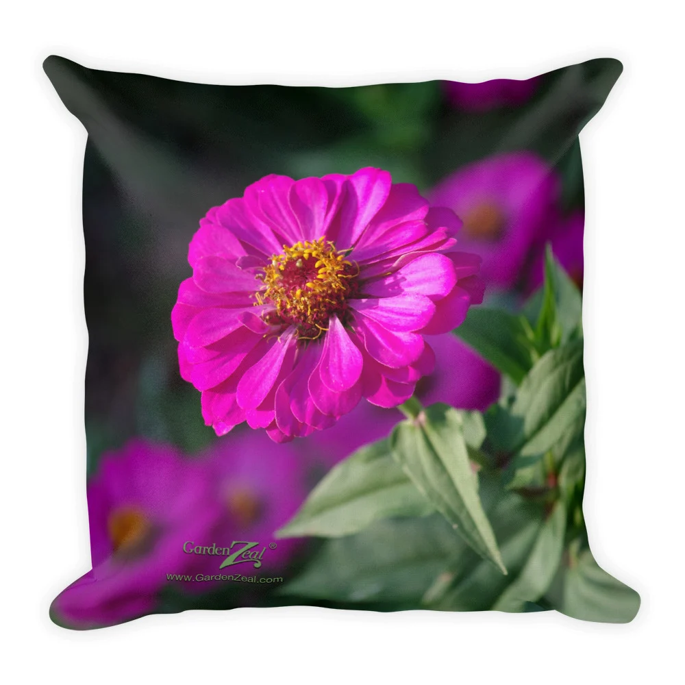 Add a pop of color to your home with this Pretty Purple Zinnia Pillow, featuring a photograph by GardenZeal creator, Laurie Wakefield.