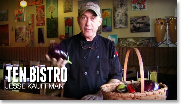 Ten Bistro owner, Jesse Kauffman used very local, organically grown vegetables from our backyard to prepare his interpretation of this Moroccan dish, Eggplant Charmoula.